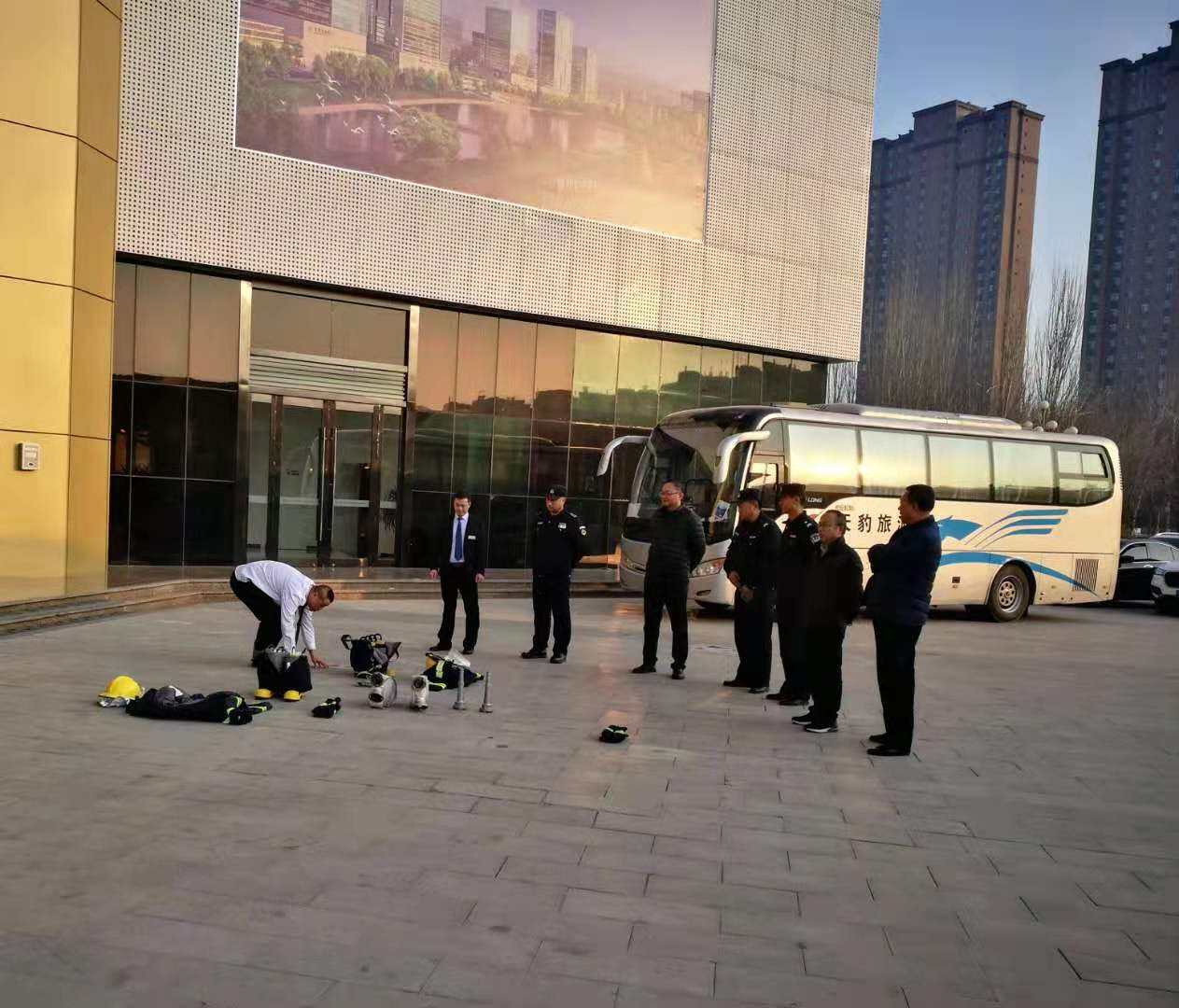 3、消防安保:由宁夏坤宁保安服务有限公司总经理讲解培训,并开展消防水带接装、收放演练等技能学习
