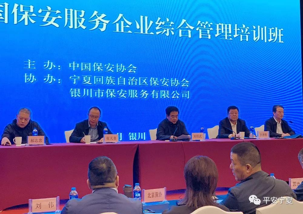 10月15日上午,全国保安服务企业综合管理培训班在银川市国贸假日酒店正式开班。中国保安协会第一副会长刘绍武、副会长黄学峰,公安厅副厅长李德胜等领导出席开班仪式。