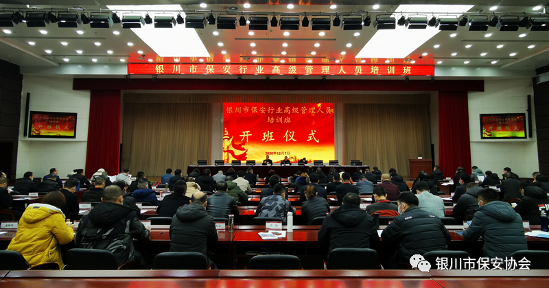 为深入学习贯彻党的十九届五中全会精神,全面贯彻落实习近平总书记视察宁夏重要讲话精神,提升银川市保安从业单位高级管理人员管理水平和业务能力。12月6日至12月8日,银川市保安协会在宁东干部教育基地举办保安行业高级管理人员培训班,96名各保安从业单位党组织书记、法人、总经理和副总经理等管理人员参加了培训。银川市公安局治安管理支队四级高级警长宗荣杰、宁东基地管委会党群工作部副部长刘明出席开班仪式并讲话,会长王进萍主持开班仪式。